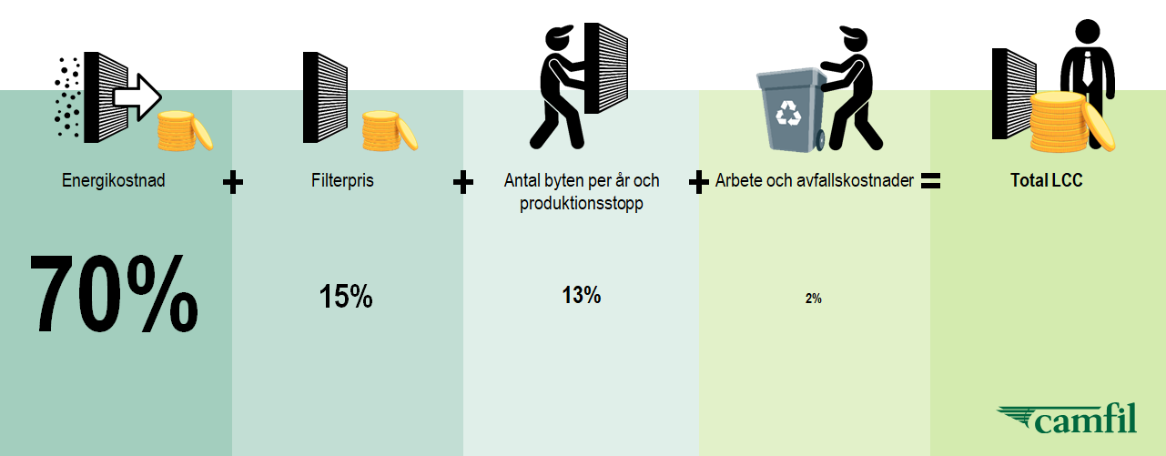 Life cycle cost eller på svenska livscykelkostnad, visar på användarens kostnader för filtrering av luften under hela brukarfasen. Ett billigt filter kan bli dyrt och mindre hälsosamt.
