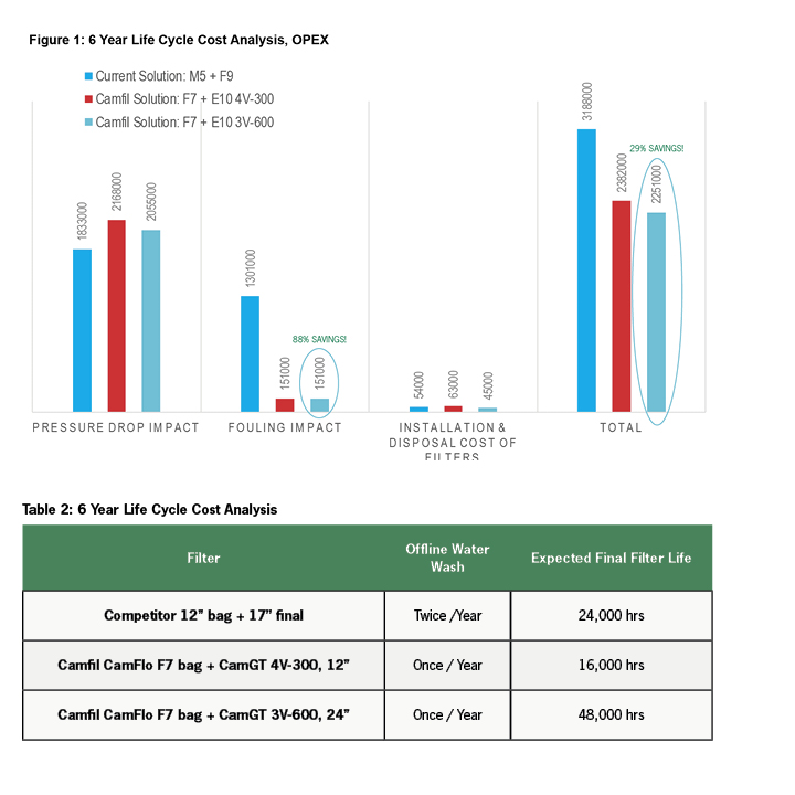 As a result of the CamLab results and LCC analysis, Camfil was awarded with the project of installing the CamFlo prefilters as a first stage and CamGT filters as a final stage.