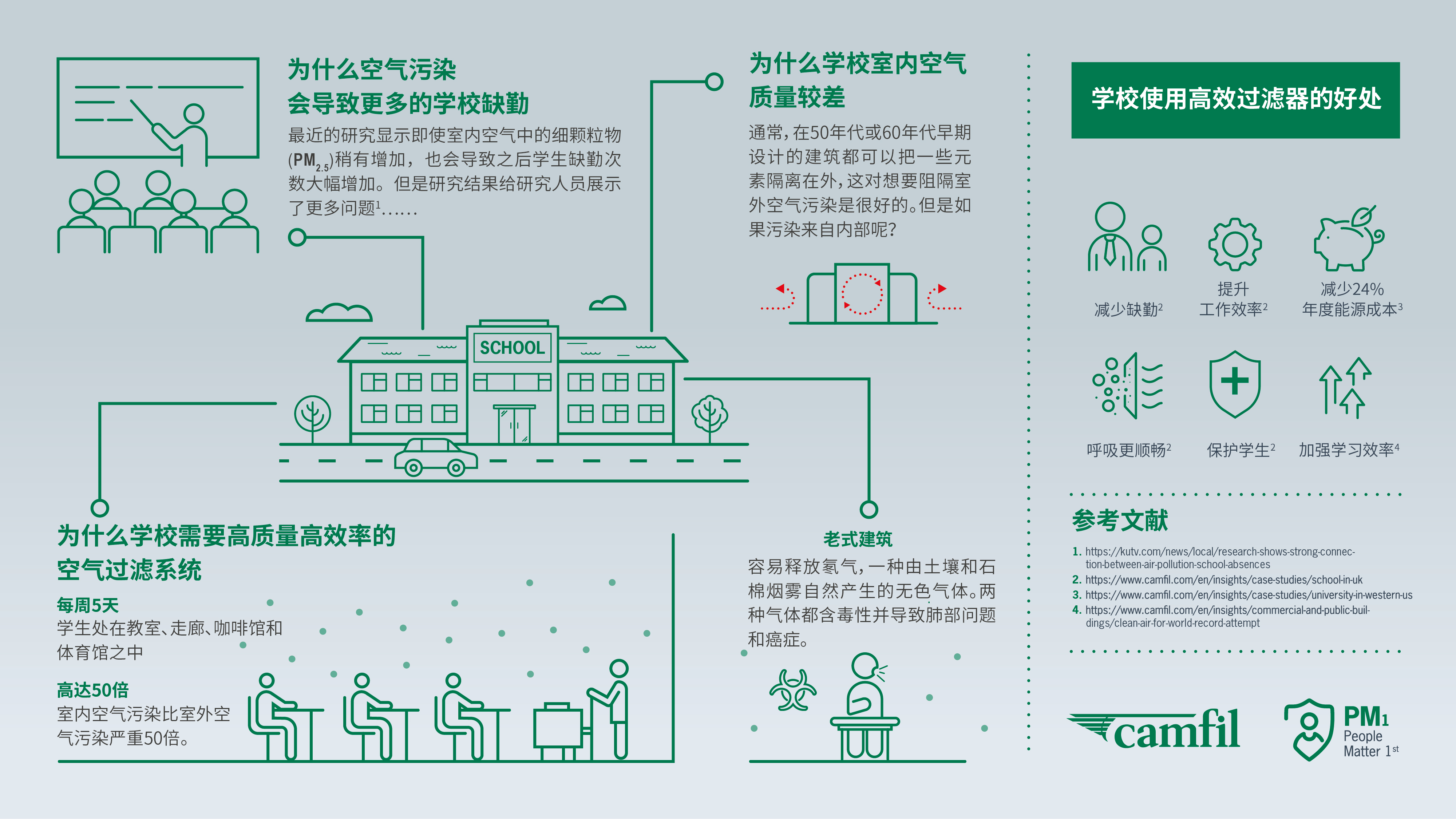 安装高品质的空气过滤器可以带来一系列的好处,包括减少学生和工作人员的缺勤,减少建筑物的损坏,改善工作表现, 提高注意力,减少负债和显著降低每年能源成本。